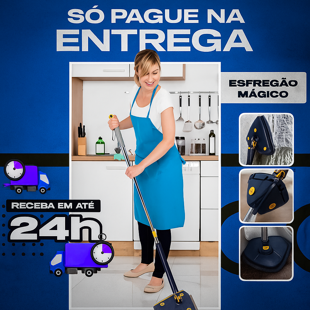 Com o Esfregão Mágico 360°, a faxina deixa de ser um peso e vira uma tarefa rápida e até prazerosa.